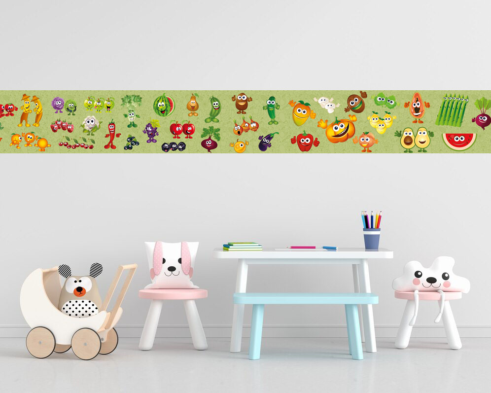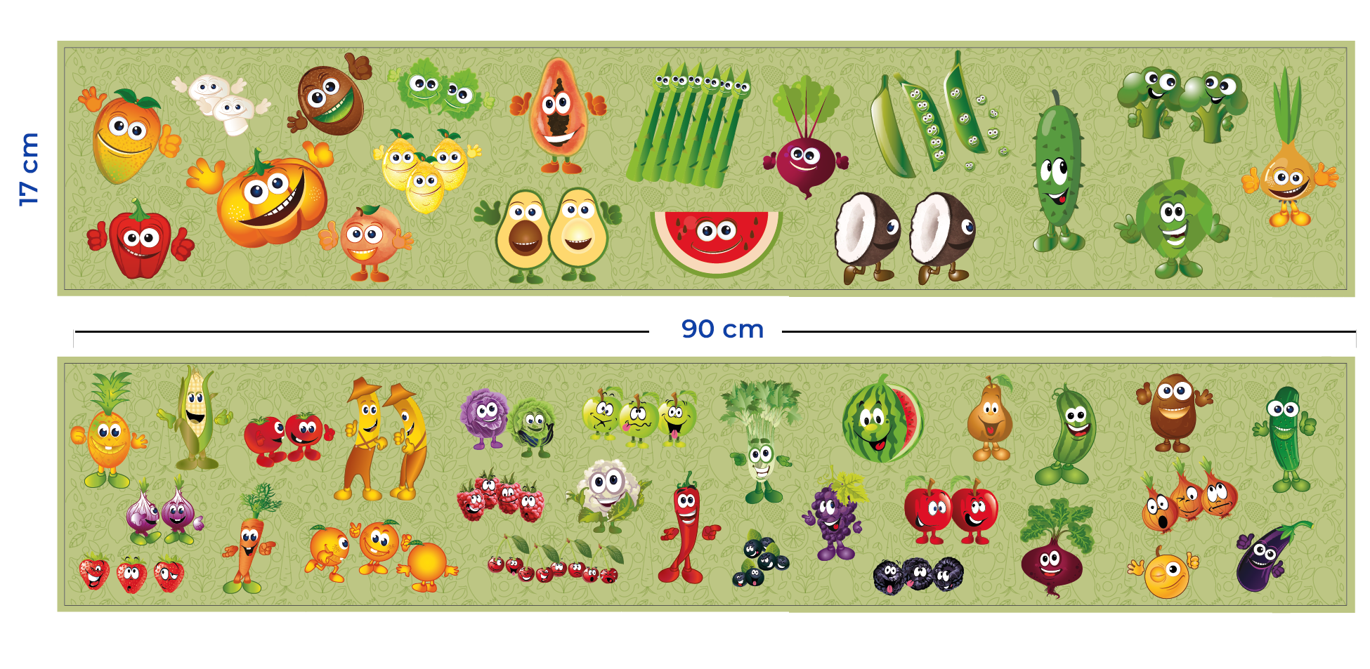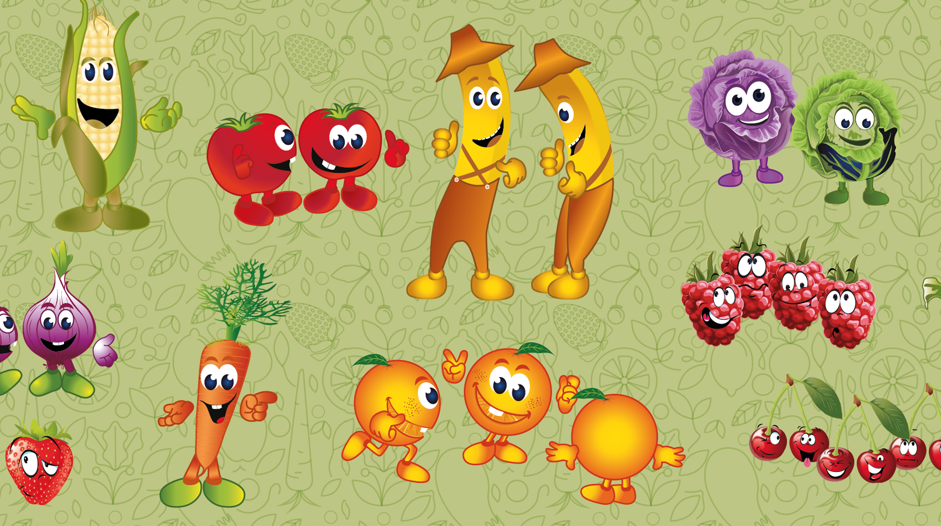 Simpáticas frutas y verduras animarán el día a día de los pequeños. Momentos interminables de juegos y diversión, que los familiarizan con los vegetales y los estimulan a su consumo.