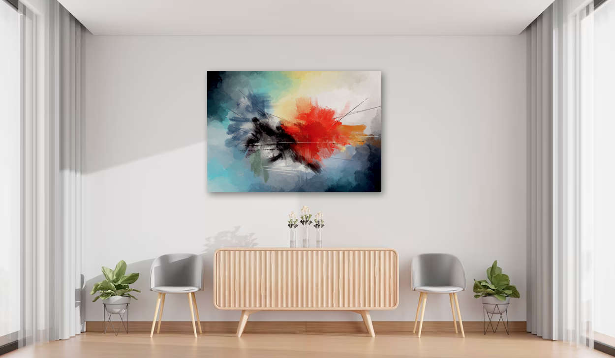 Características: cuadro con impresión digital mate de alta calidad sobre lienzo, montado en bastidor de madera.