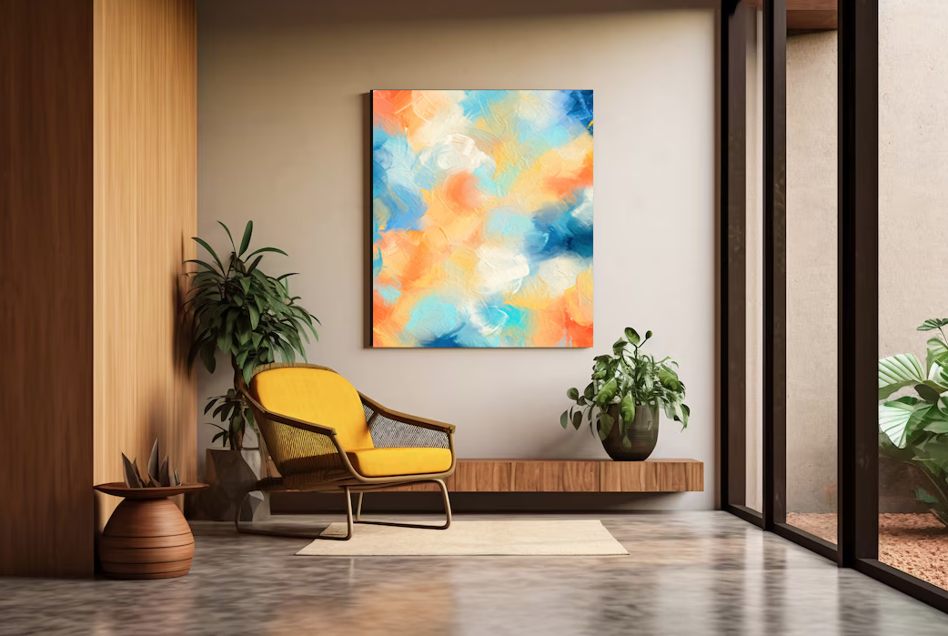 Transforme su ambiente con este vibrante diseño abstracto, perfecto para crear un punto de atención o añadir personalidad al conjunto de la decoración. Este diseño único es ideal tanto para espacios modernos como creativos. Destaque sus interiores y marque la diferencia con un estilo muy contemporáneo y dinámico.