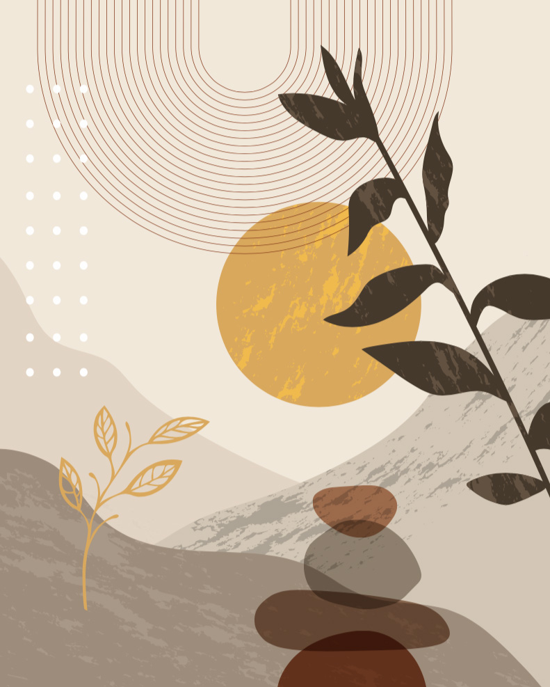 Tres hermosos y contemporáneos cuadros, que pueden adquirirse en conjunto o individualmente, con una audaz combinación de elementos abstractos y naturales. Siluetas estilizadas en tonos terrosos sobre un suave fondo crema, crean una atmósfera llamativa pero relajante. Es ideal para salas de estar, dormitorios y oficinas que buscan un aire fresco y contemporáneo.