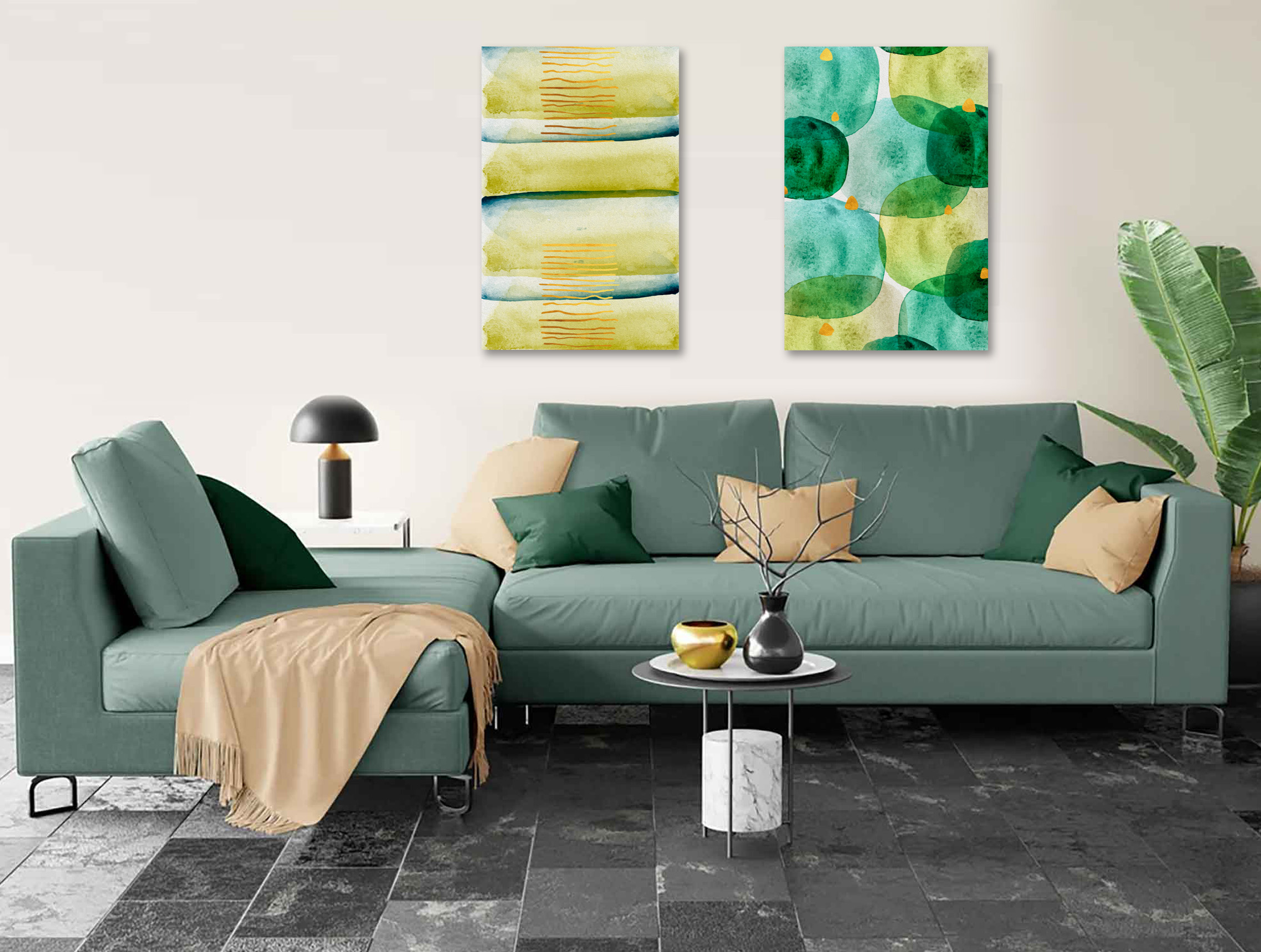 Este conjunto de diseño apacible presenta una mezcla de suaves figuras ovaladas y franjas en tonos pastel que crean una atmósfera armoniosa y onírica. Perfecto para añadir un toque de tranquilidad a cualquier espacio, ambos cuadros impregnan su hogar con una delicada paleta de colores, ideal para dormitorios, salas de estar u oficinas. Mejore cualquier ambiente con este cautivador conjunto. Puede adquirir el conjunto o el modelo de su preferencia.